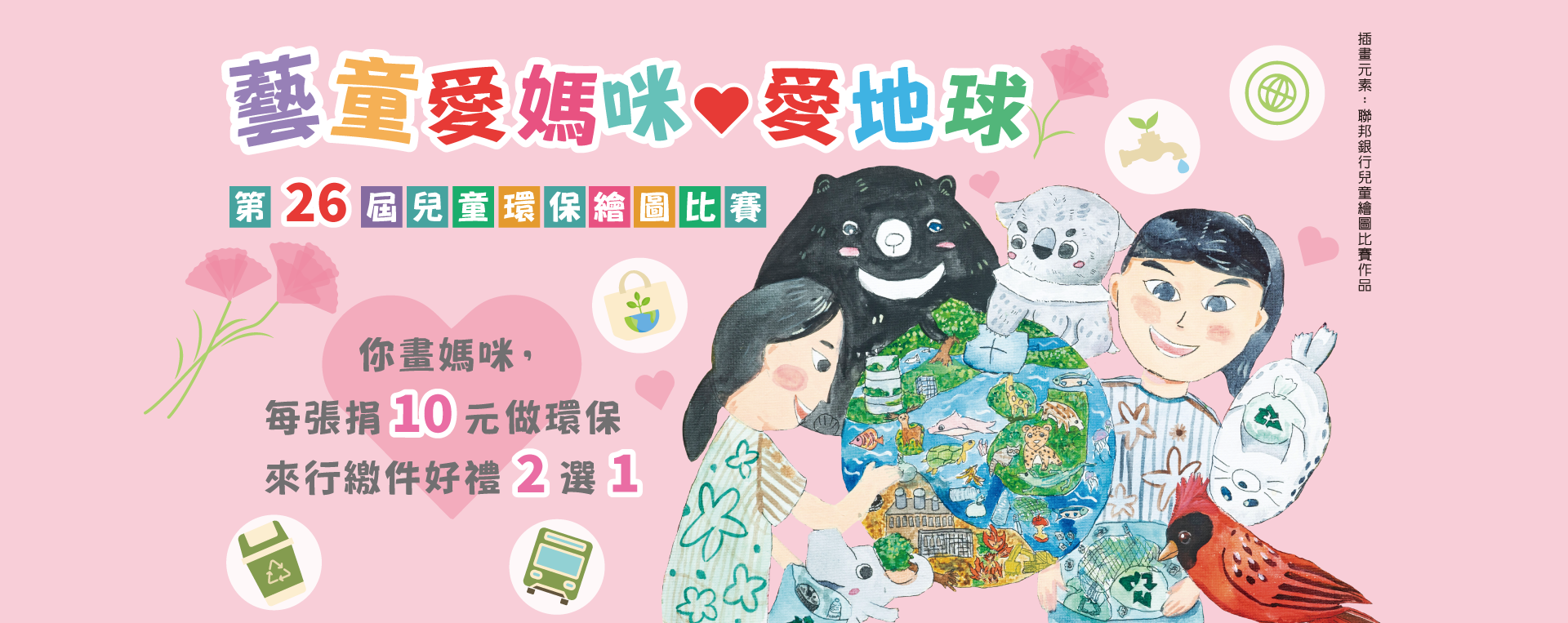 | 比賽宗旨 | 環境保護人人有責!本次比賽邀請小朋友在母親節前夕,運用各種色彩及技巧的表達,勾勒出與媽咪攜手做環保的生活時光,藉此培養兒童藝術涵養、並從小扎根SDGs永續觀念及推廣聯邦銀行業務。 |