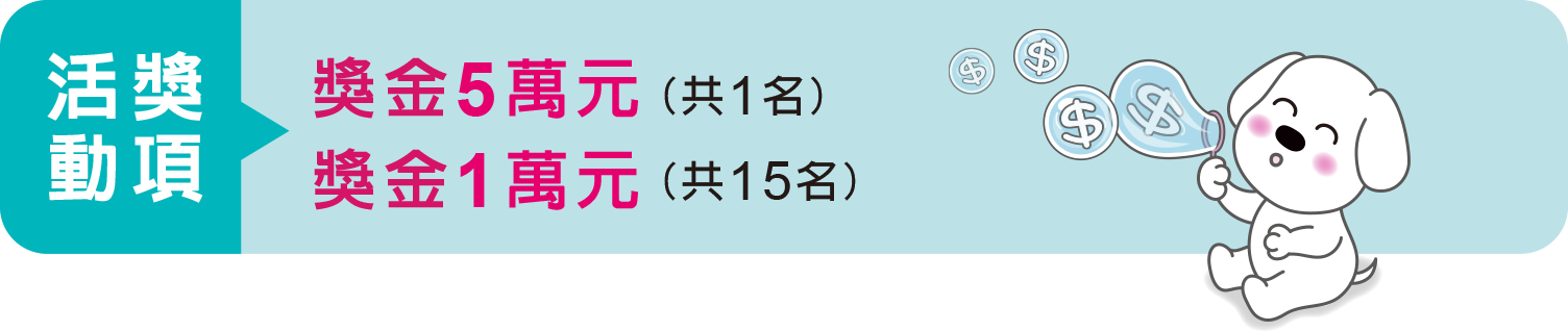 | 2. | 關於「全民+1 政府相挺,普發1萬現金」政策以行政院財政部最終頒布辦法為準,若政府政策調整或延後時程,將以本行後續公告時程為準。 |